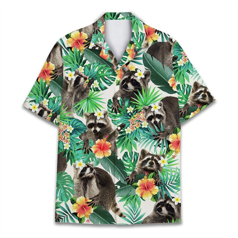 Funny Raccoon 3D Print Shirts For Men Hawaiian Casual Short Sleeve Lapel Blouse