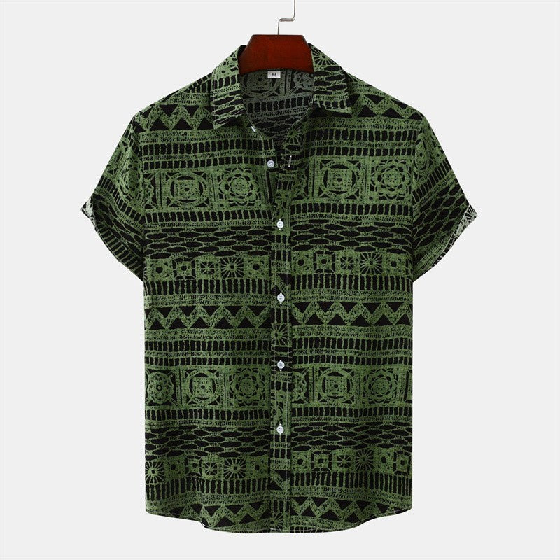 Retro Geometric Texture 3d Print Hawaiian Shirt Men Summer Short Sleeves Tops Beach Harajuku Street Lapel Blouse Male Clothes