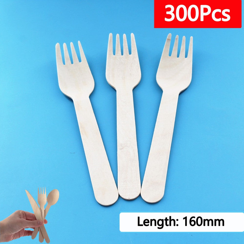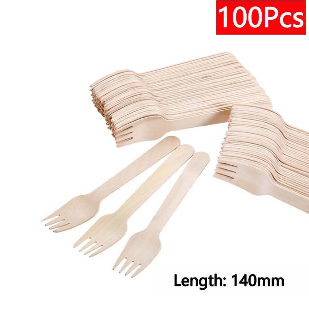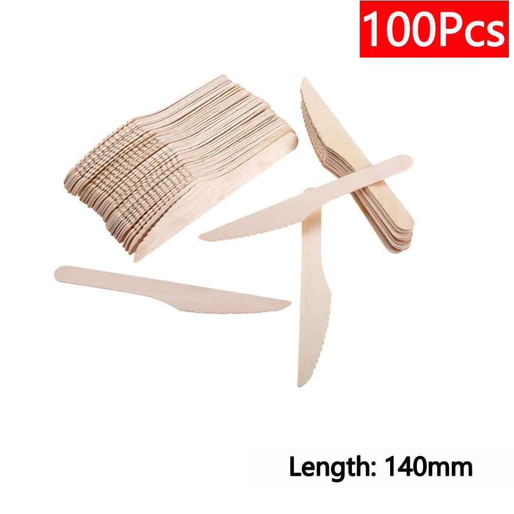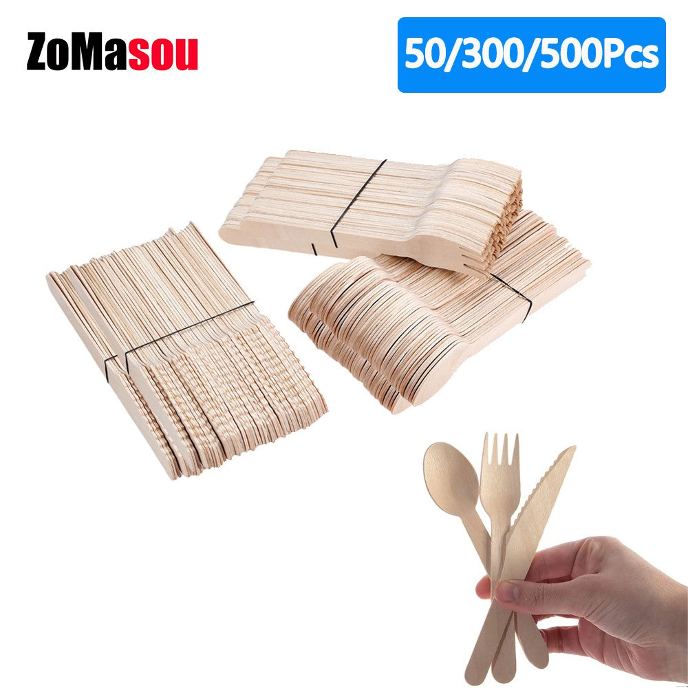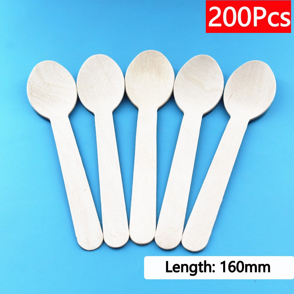 10-500Pcs Disposable Wooden Cutlery/ForksSpoons/Cutters Knife Wedding Birthday Party Supplies Kitchen Utensil Dessert Cake Scoop