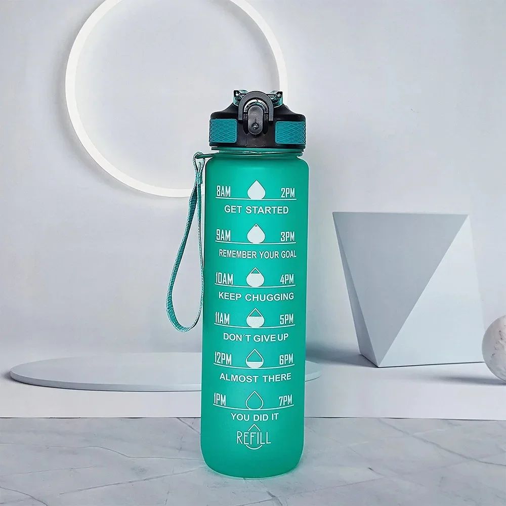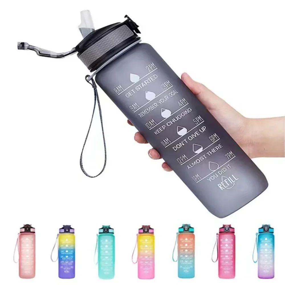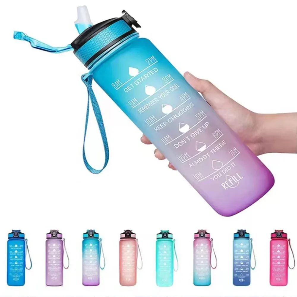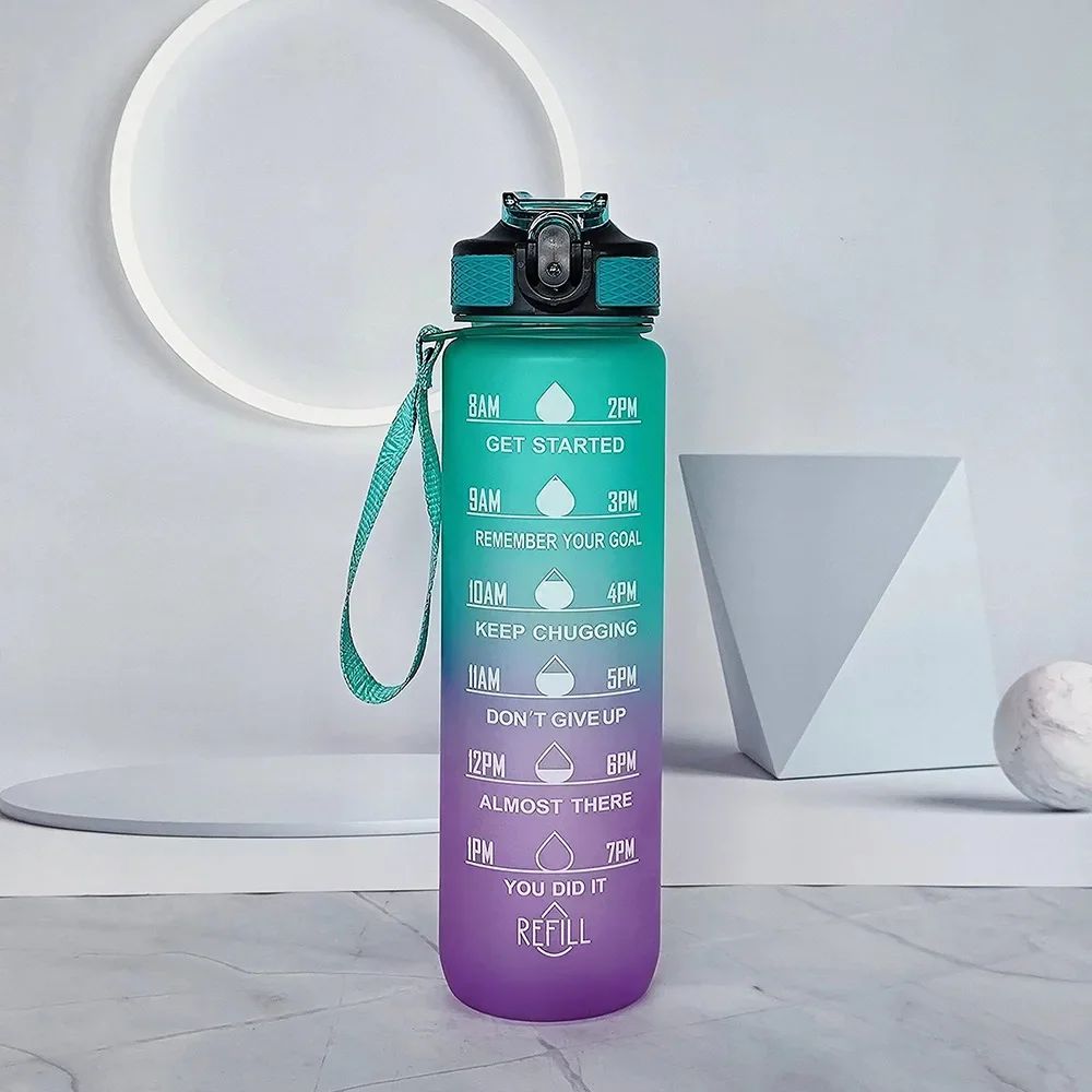 1L Sports Bottlewith Time Marker Gradient Color Motivational Bottle Leakproof Portable For Outdoor Travel Gym Fitness Office