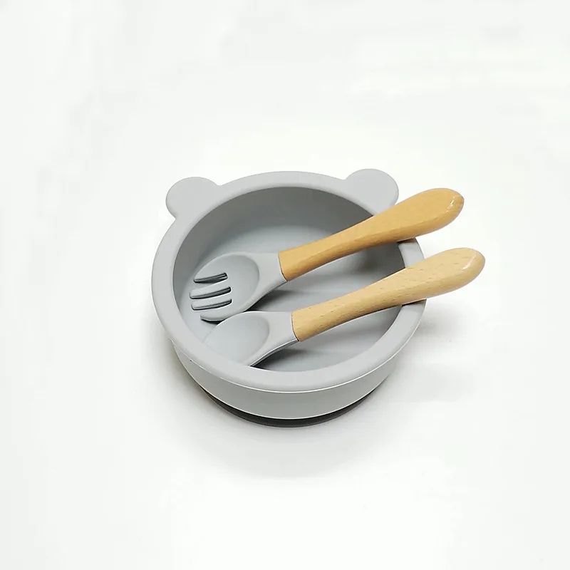 BPA Free Baby Silicone Sucker Bowl Plate Children's Tableware Training Fork Spoon Portable Feeding Snack Cup Dining Appliance