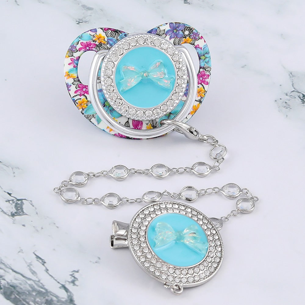 Luxury Rhinestones Baby Pacifier Chain Clips with Lid Princess Prince Crown Pacifiers Newborn Silicone Nipple Infant Shower Gift