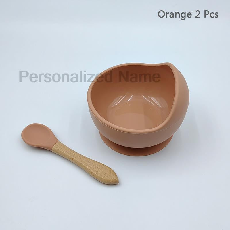 Personalized Name Baby Feeding Set Children's Silicone Suction Cup Bowl Training Spoon Fork Tableware Baby Feeding Bowl BPA Free