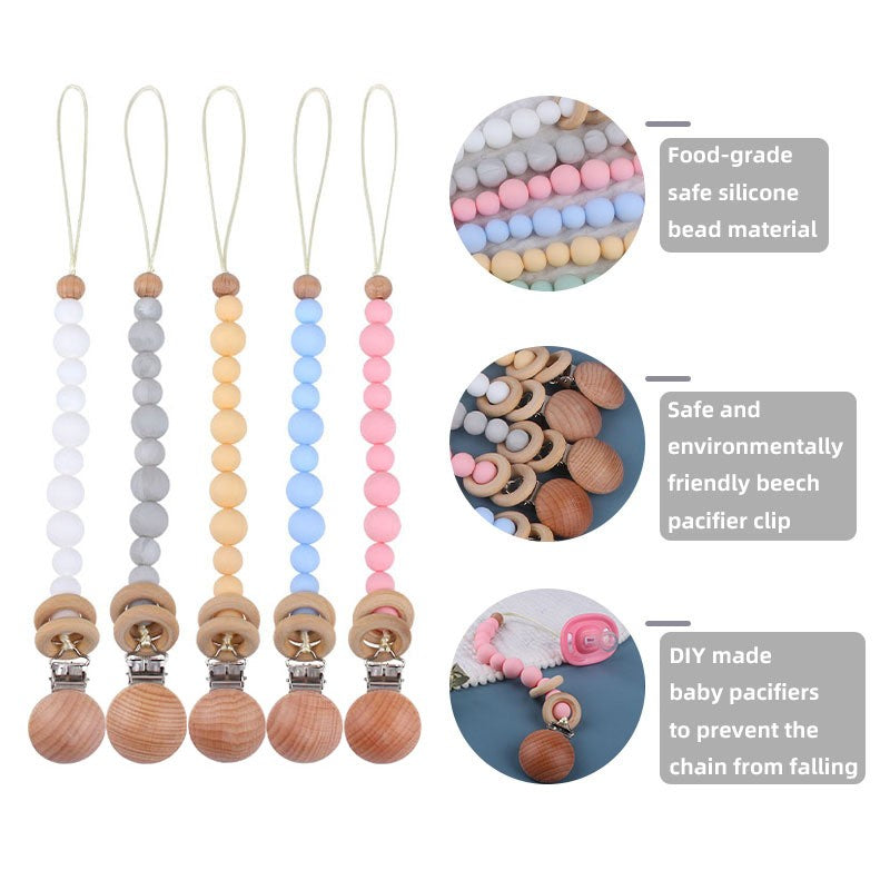 Baby Pacifier Clips Silicone Beads Wooden Ring Dummy Chain Newborn Gift Teether Soother Chain Nipple Holder Baby Stuff Accessory