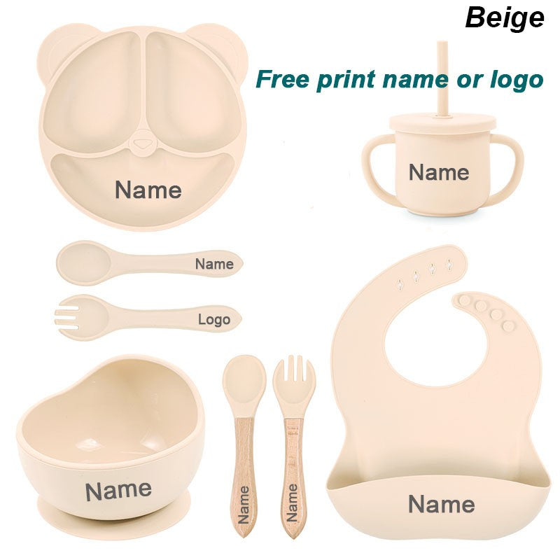 Silicone Bib & Tableware Set Waterproof & Easy to Clean Free Name Engraving Creative Gifts Customized for Babies