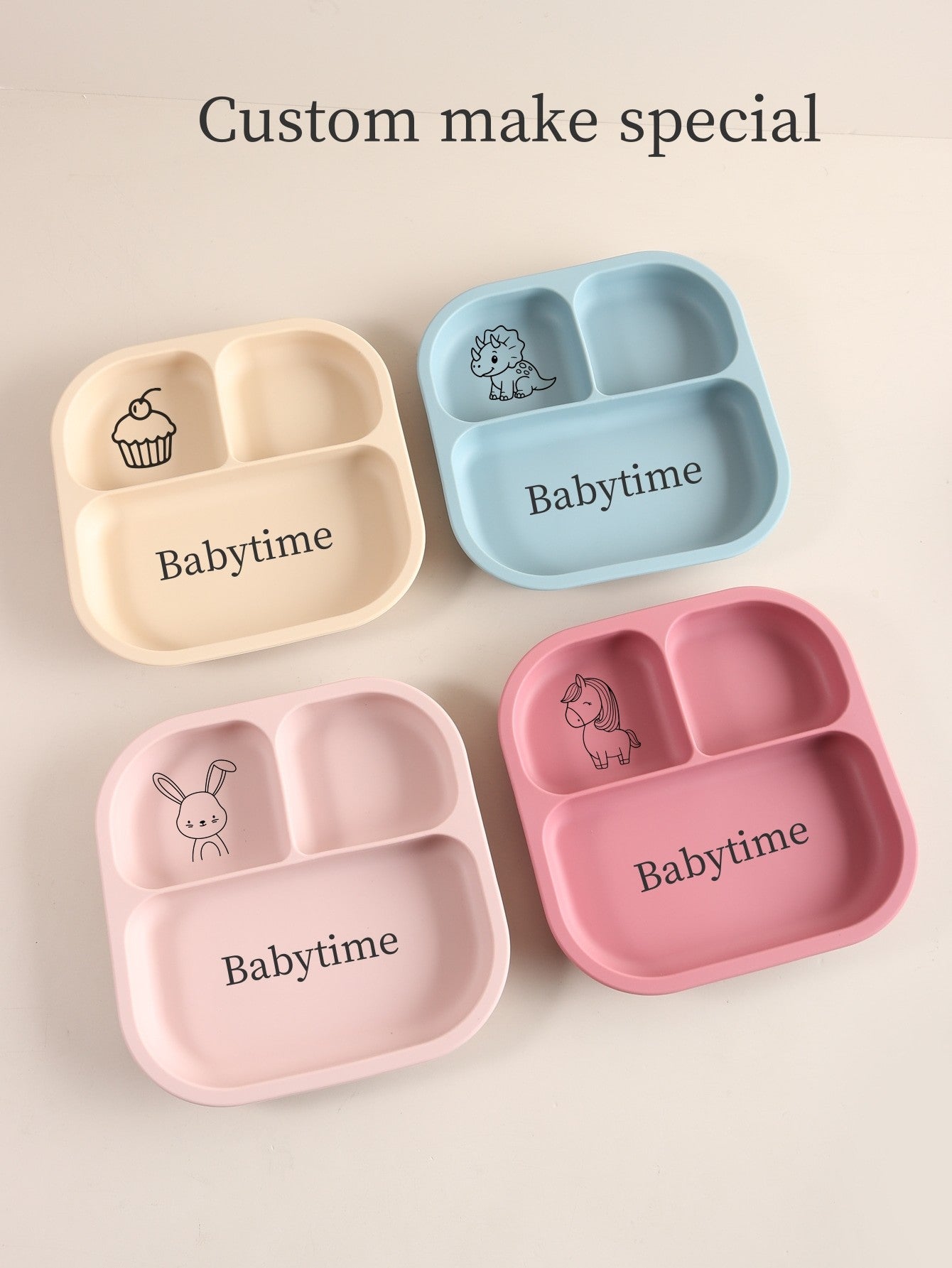 Spill-Proof 3-Section Suction Plate | Custom Name & Fun Cartoon Designs for Toddlers baby silicone square plate