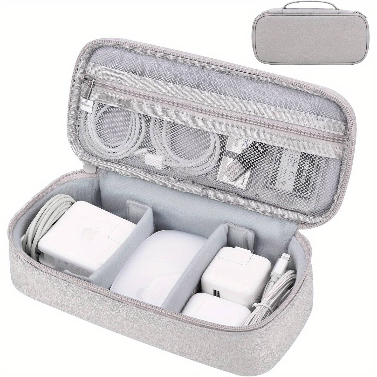 Electronics Travel Organizer Bag with Cable Management Compartments - Light Gray Tech Case with Zippered Pocket