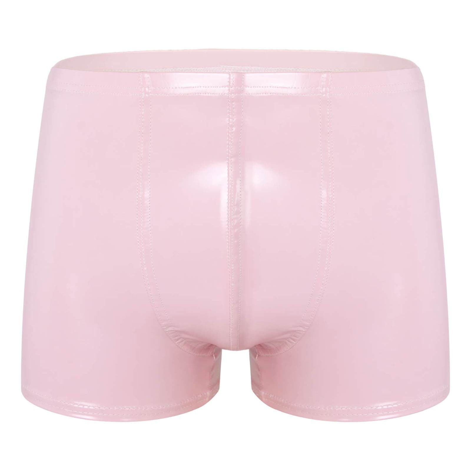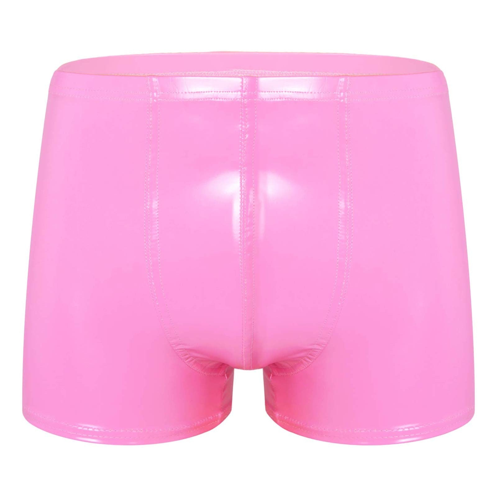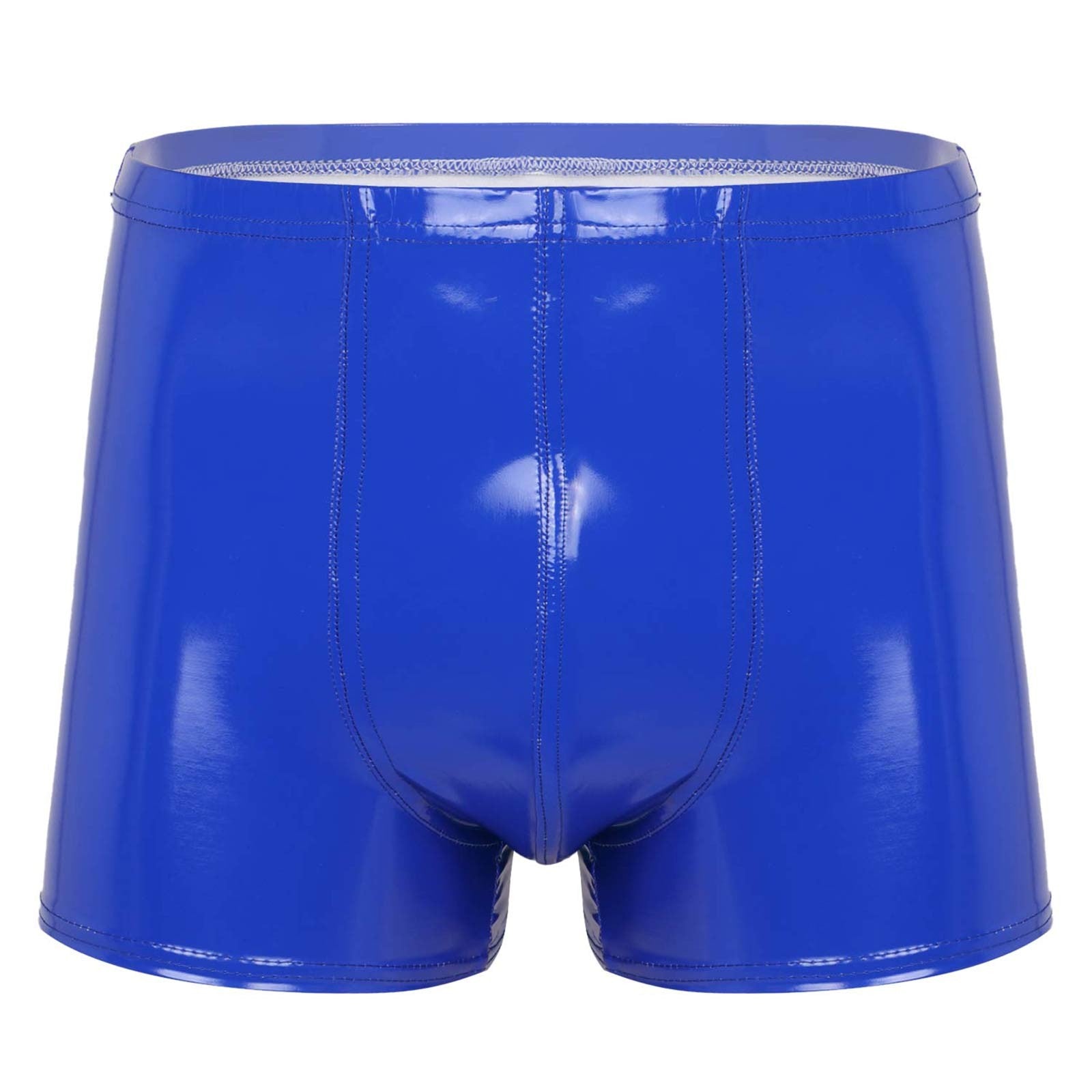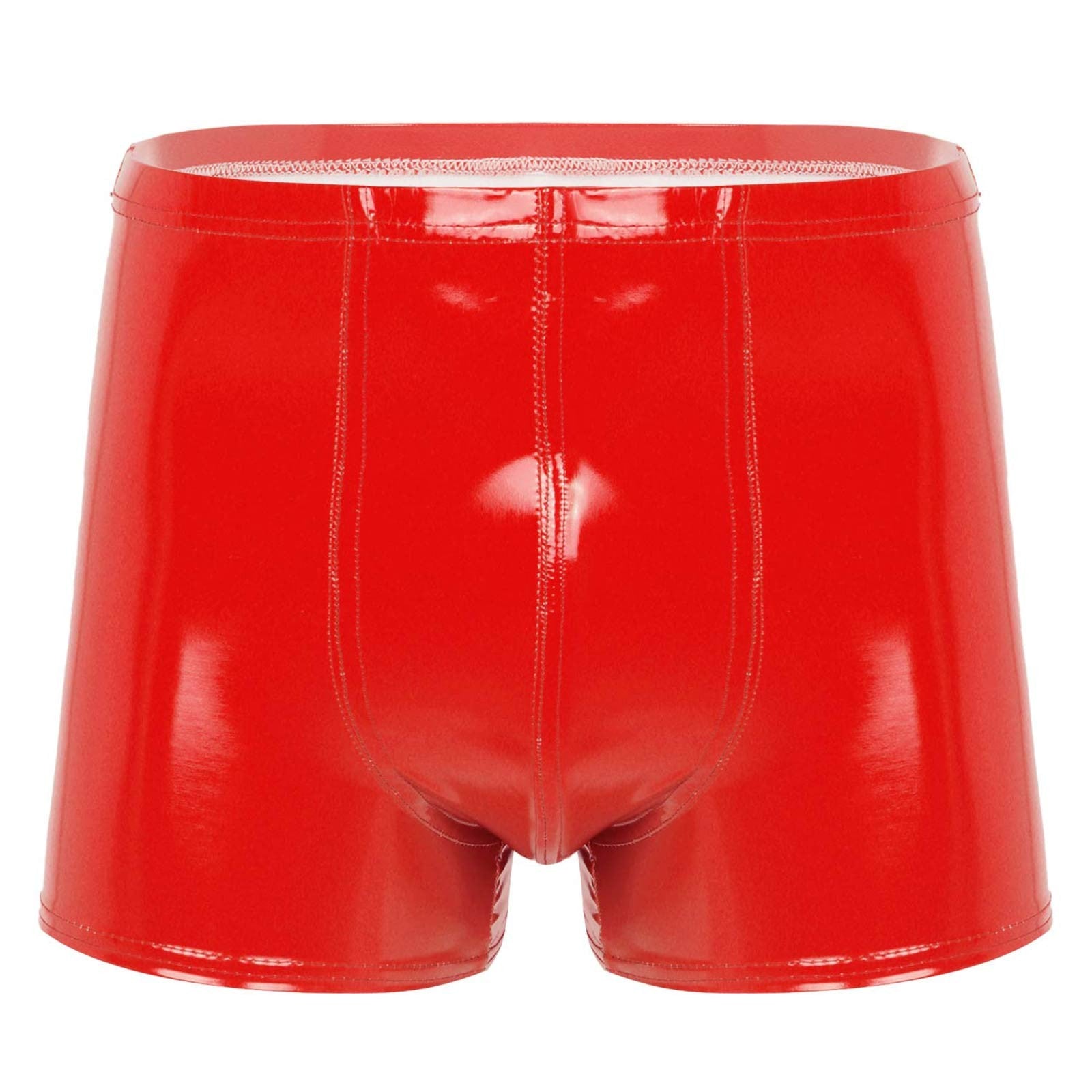 Mens Patent Leather Shorts Dance Performance Clubwear Wet Look Pants Elastic Waistband ShortsBulge Pouch Boxer Briefs Shorts