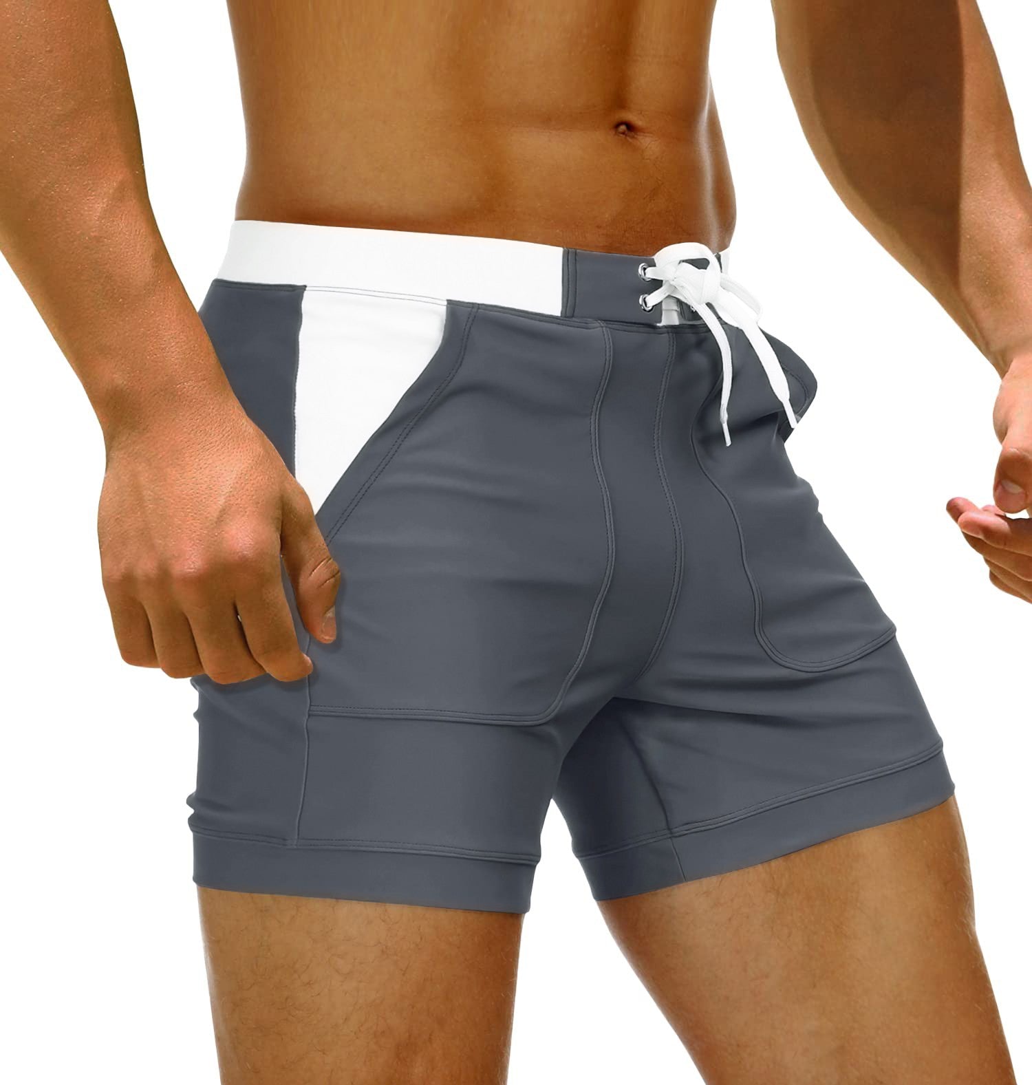 TACVASEN Summer Swimming Board Shorts Mens Beach Shorts Brief Boxer Trunks With Pocket Quick Dry Outdoor Casual Swimwear Bottoms
