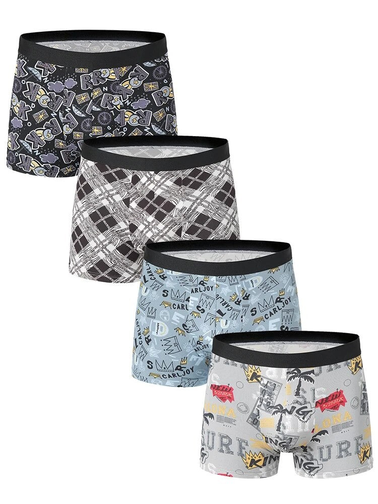 4 Pieces European and American Size MEN'S FASHION Printed Boxer Underwear Comfortable Swimming Trunks Oversized Underwear Shorts