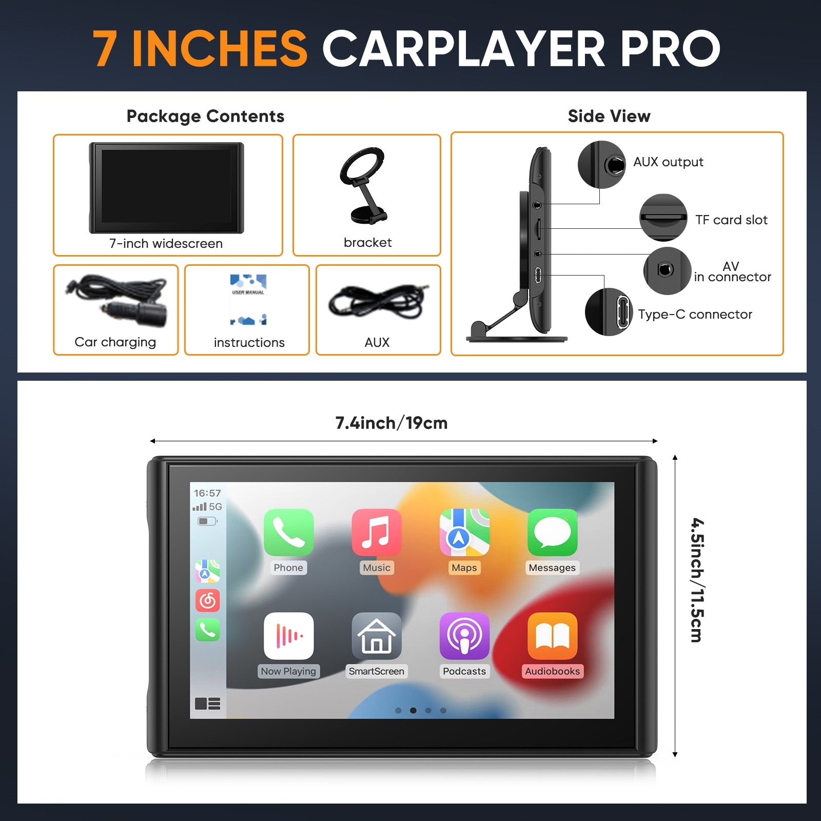 Wireless Apple Carplay Screen for Car Android Auto Magnetic Holder Portrait & Landscape Screen, GPS Navigation, Portable d