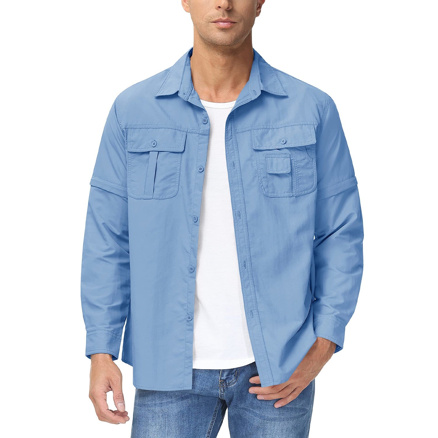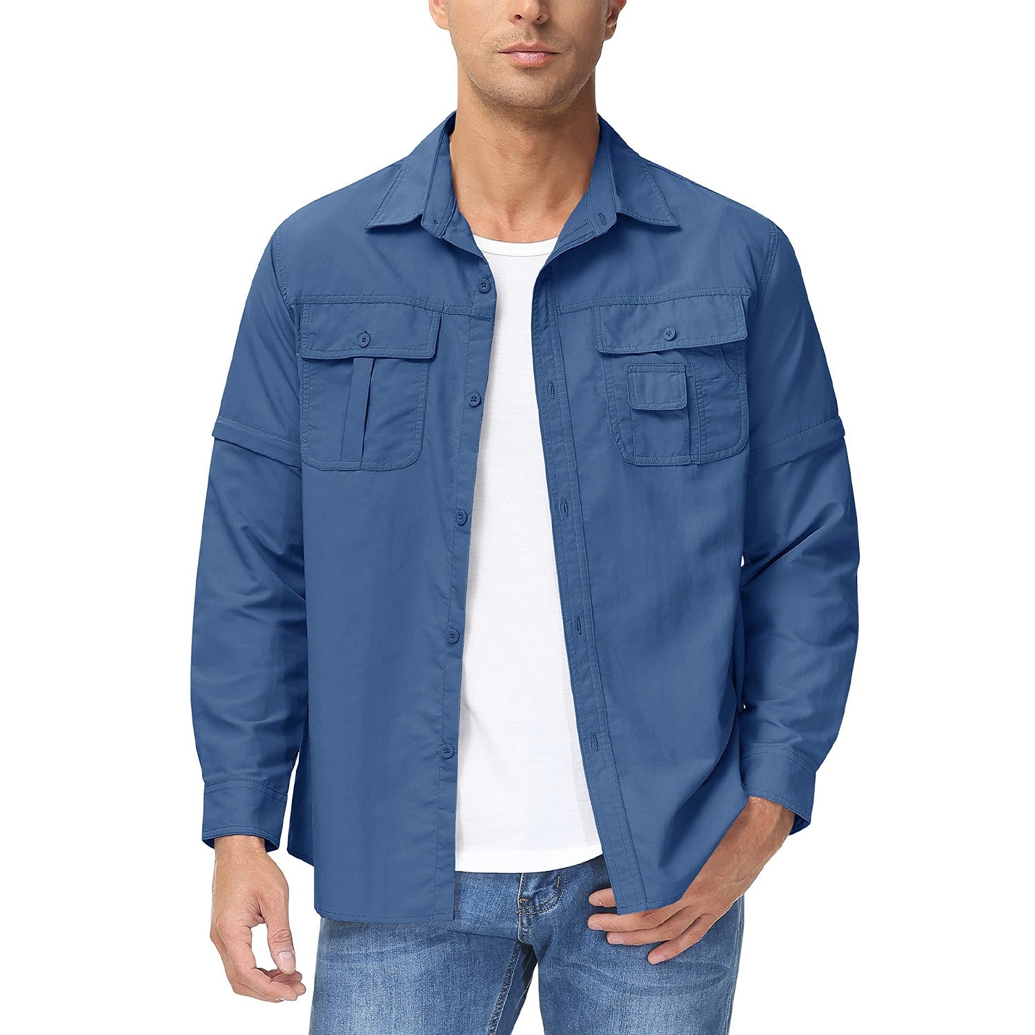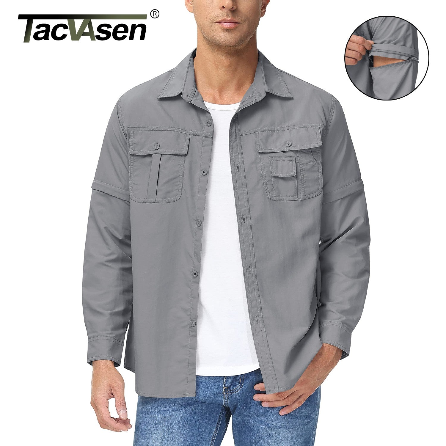 TACVASEN Summer Quick Dry Long Sleeve Cargo Work Shirts with Pockets Mens Safari Hiking Shirts Button Down Shirts Clothes Males
