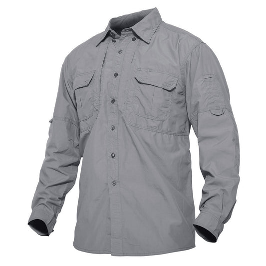 Men Summer Tactical Long Sleeved Shirts US Hot Outdoor Multi-pocket Army Green Waterproof Summer Camping Fishing Cargo Shirts