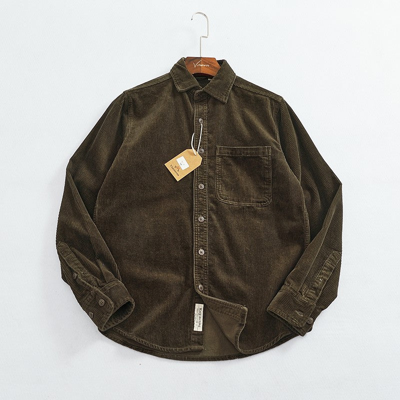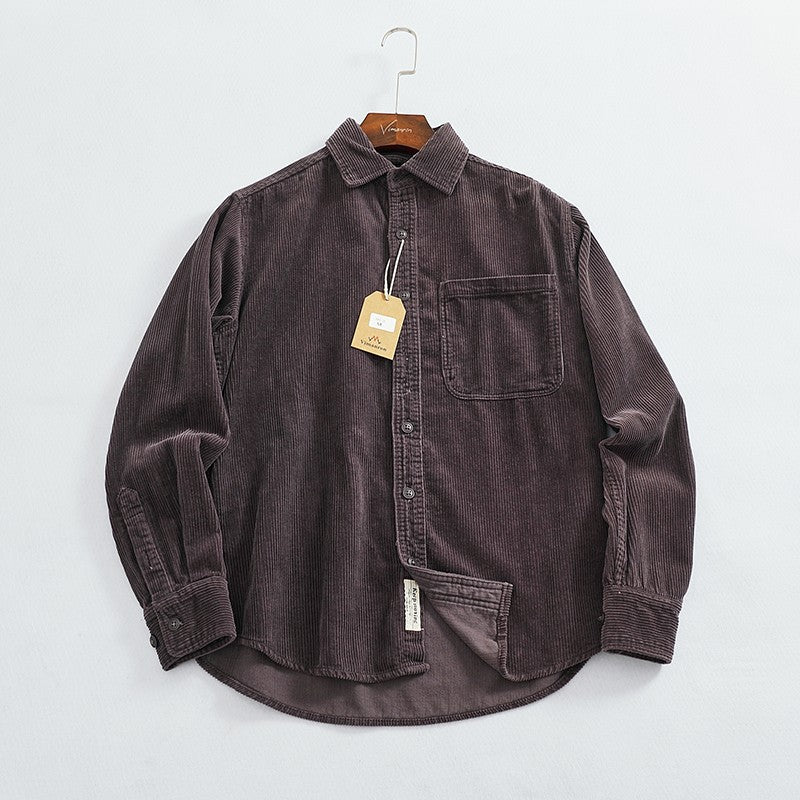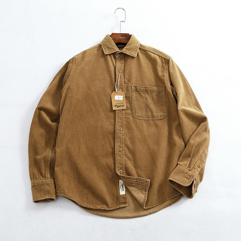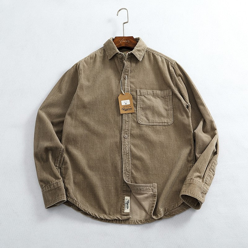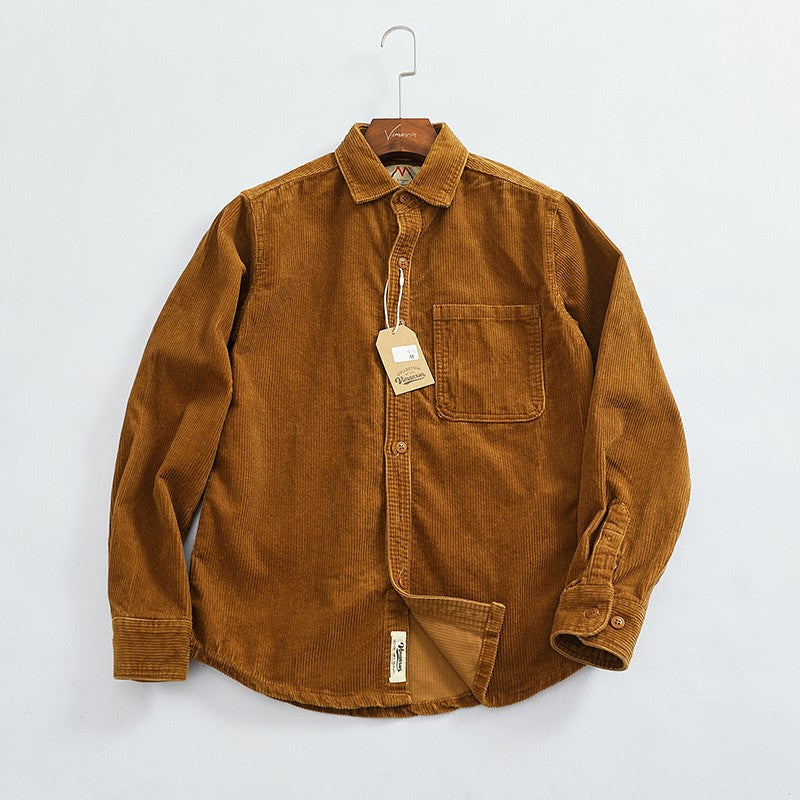 Heavy chunky high pit chunky strip vintage corduroy long sleeve shirt men's autumn cotton cargo shirt jacket