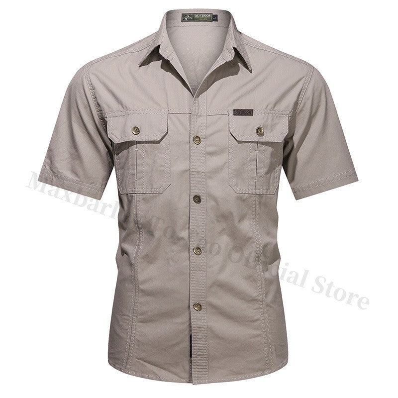 New Men's Work Shirt Casual Retro 100% Cotton Short Sleeve Flying Cargo Shirt Men's Summer Fishing Hunting Multi Pocket Shirt