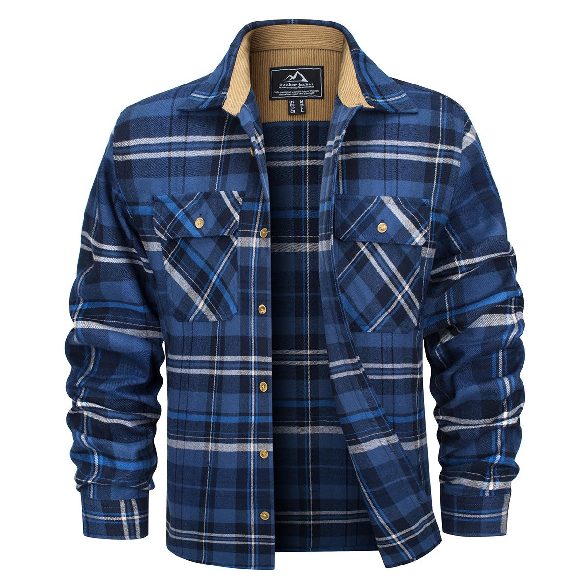 MAGCOMSEN Flannel Shirts Men's Long Sleeves Cotton Long Sleeve Plaid Shirt with 2 Pockets Button Down Casual Corduroy Shirt Male
