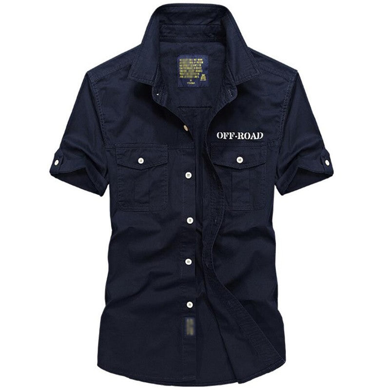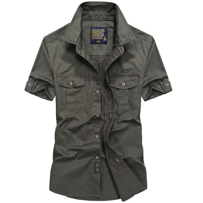 2023 Summer New Fashion Cotton Casual Shirts Men Loose Shirts Short Sleeve Turn-down Collar Military Style Male Tops