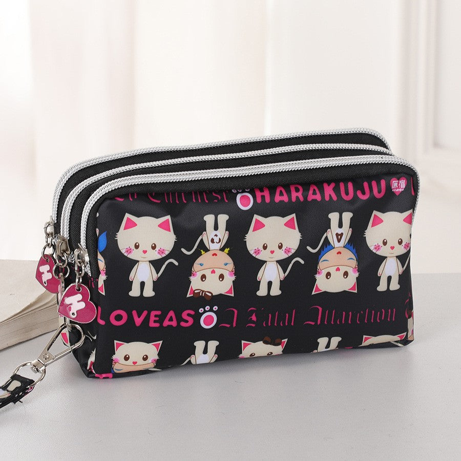 New long women's clutch, three-layer zipper, large-capacity coin purse