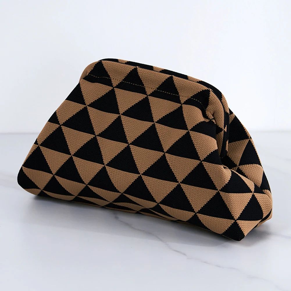 Women Knit Stripe Purse Contrast Color Small Crochet Handbag Knitting Dumpling Clutch Woven Bag for Female