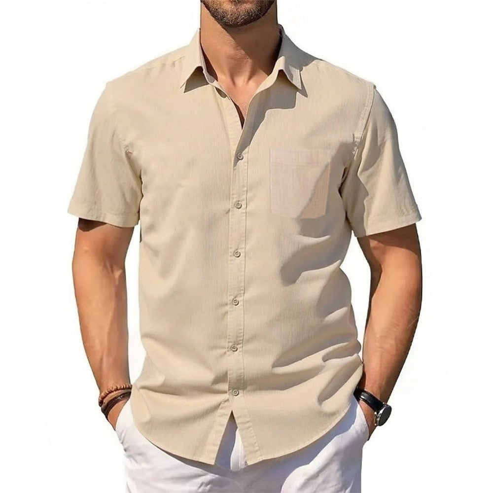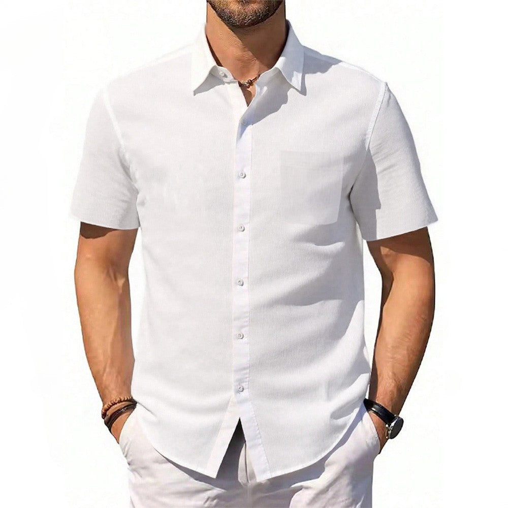 Mens Short Sleeve Shirt Summer New Cotton Linen T-shirt S Lightweight Breathable Beach Tops Turn Down Collar Casual Button Up
