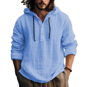 Casual Hood T Shirt Cotton Linen Flax Blouse Tee Tops Long Sleeves Men Holiday Beach Spring Solid Plain Tunic Loose Hoodie Shirt