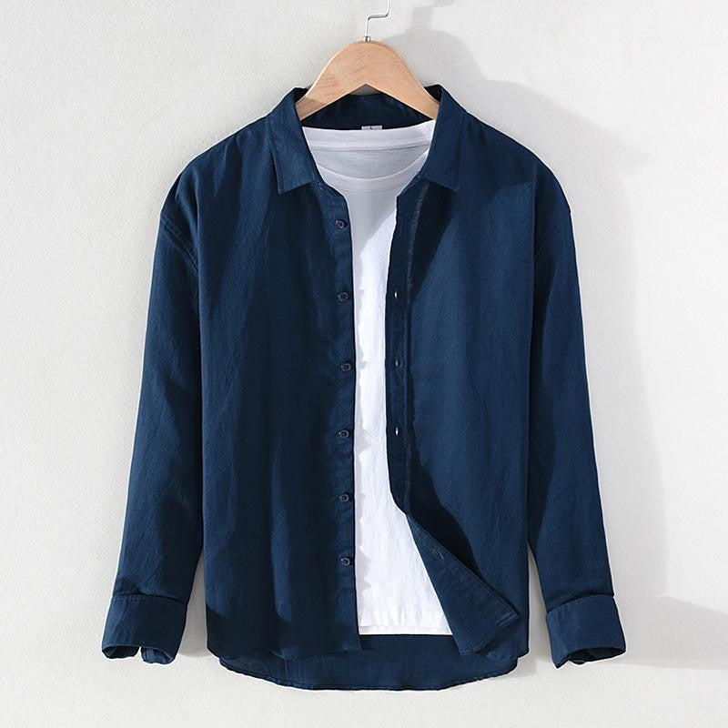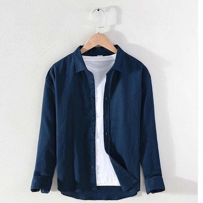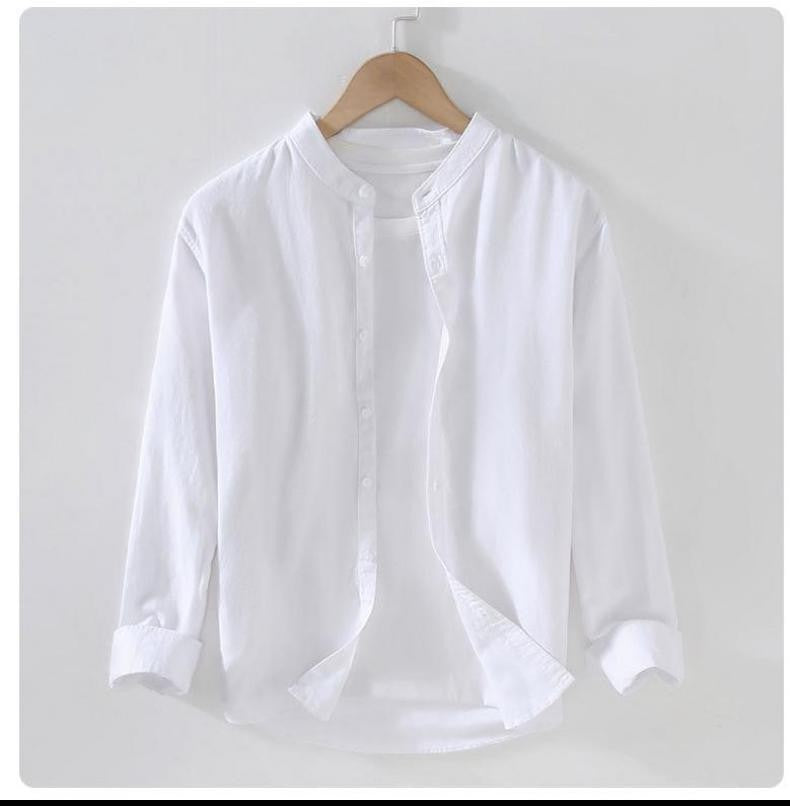 M-3XL Spring and Summer Stand Collar Plain Color Long-sleeve Vintage Men's Streetwear Single Breasted Linen Shirts