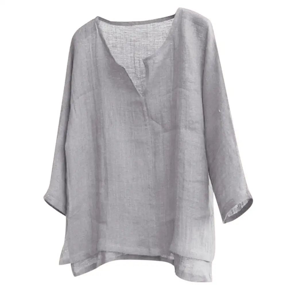 Cotton Linen Men Shirt Brief Breathable Comfy Solid Color Long Sleeve V neck Casual Blouse Hawaiian Shirt Oversize Tops