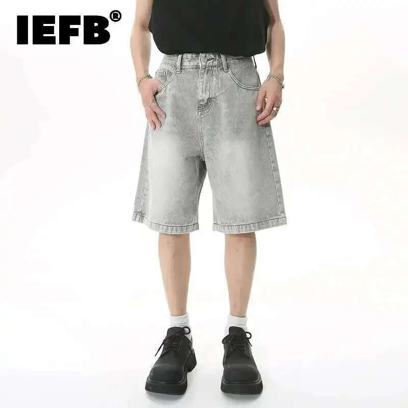 IEFB Summer Men's Casual Jeans Shorts Loose Mid High Waist Fashion Knee Lenght Denim Short Pants Vintage Male New Korean 9A8588