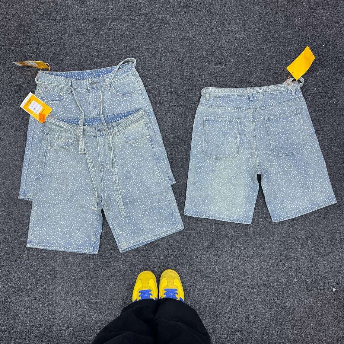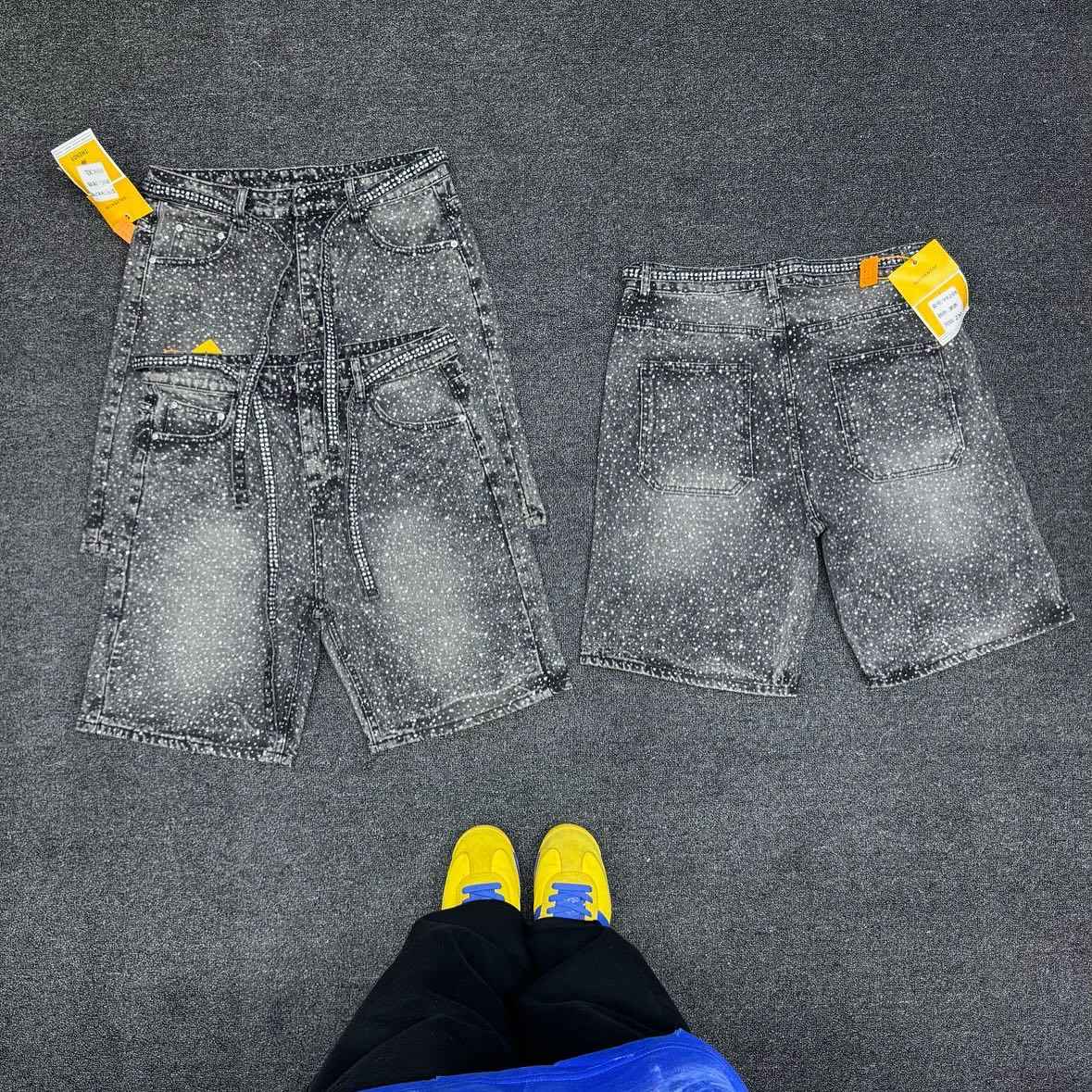 Vintage Sequin Denim Shorts Y2K Jeans Hip Hop Rhinestone Sequin Vintage Denim Shorts Low Rise Over The Knee Pants Casual Shorts