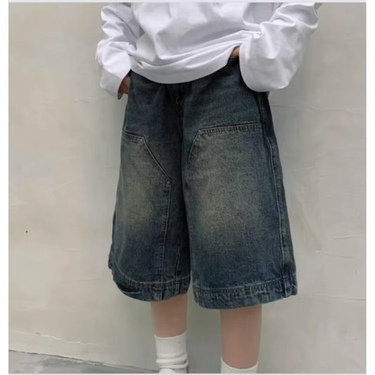 Y2K Vintage Baggy Jean Shorts Womens Washed Wide Leg Capri Pants Casual Barrel Jeans Denim Shorts Mens Oversized Jorts