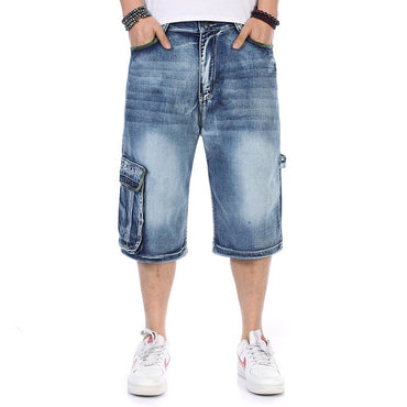 ABOORUN Mens Plus Size Loose Baggy Denim Shorts Fashion Streetwear Hip Hop Skateboard Cargo Jeans Short for Male R1402