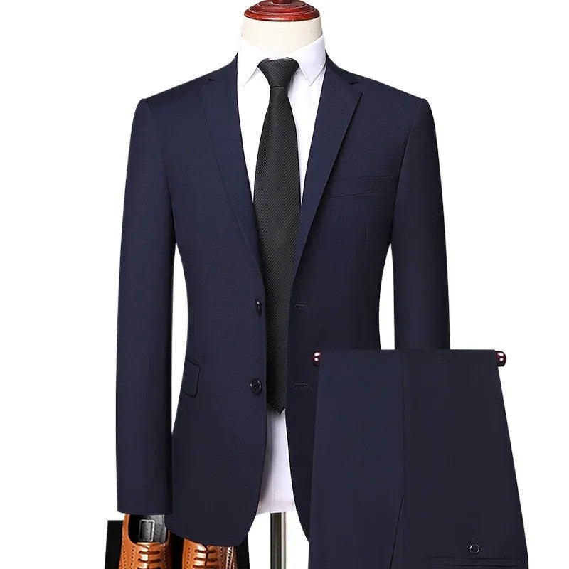 Men Slim Fit Business Suit One Button Formal Two-Piece Suit Boutique Business Dress Wedding Groom Suit Coat Blazers Trousers
