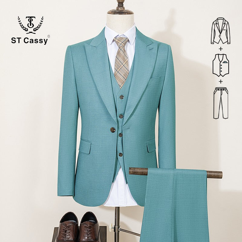 ST Cassy High Quality Men's Suit Summer thin Green Slim Fit Formal Business Office Men's Suits?jacket+Vest+Pants?
