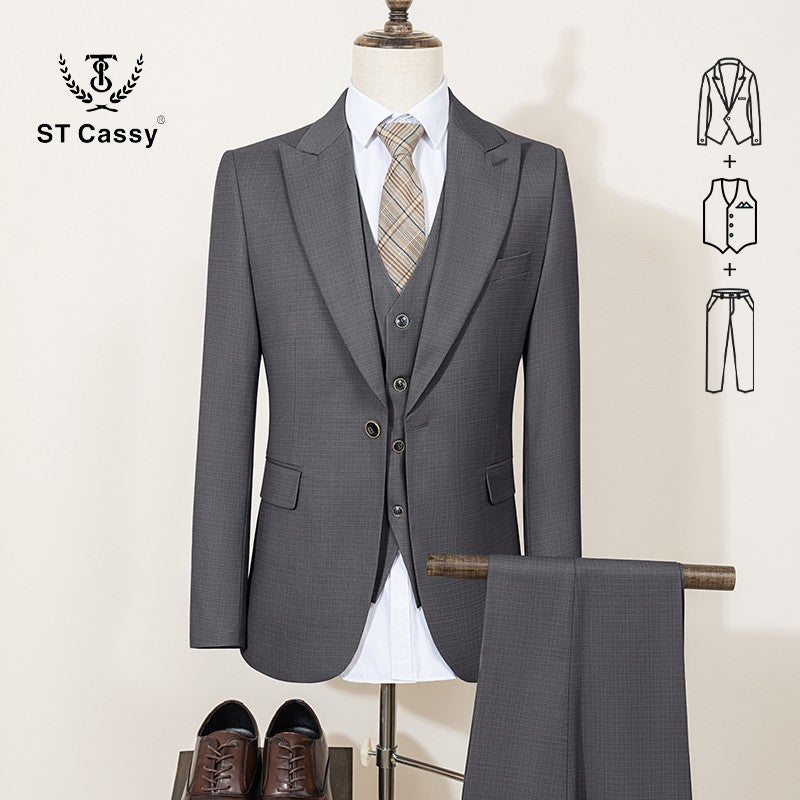 Men's Solid Color Business Suit 2025 High Quality Fashion Banquet Wedding Trend Groom Best Man Single 3/2/1