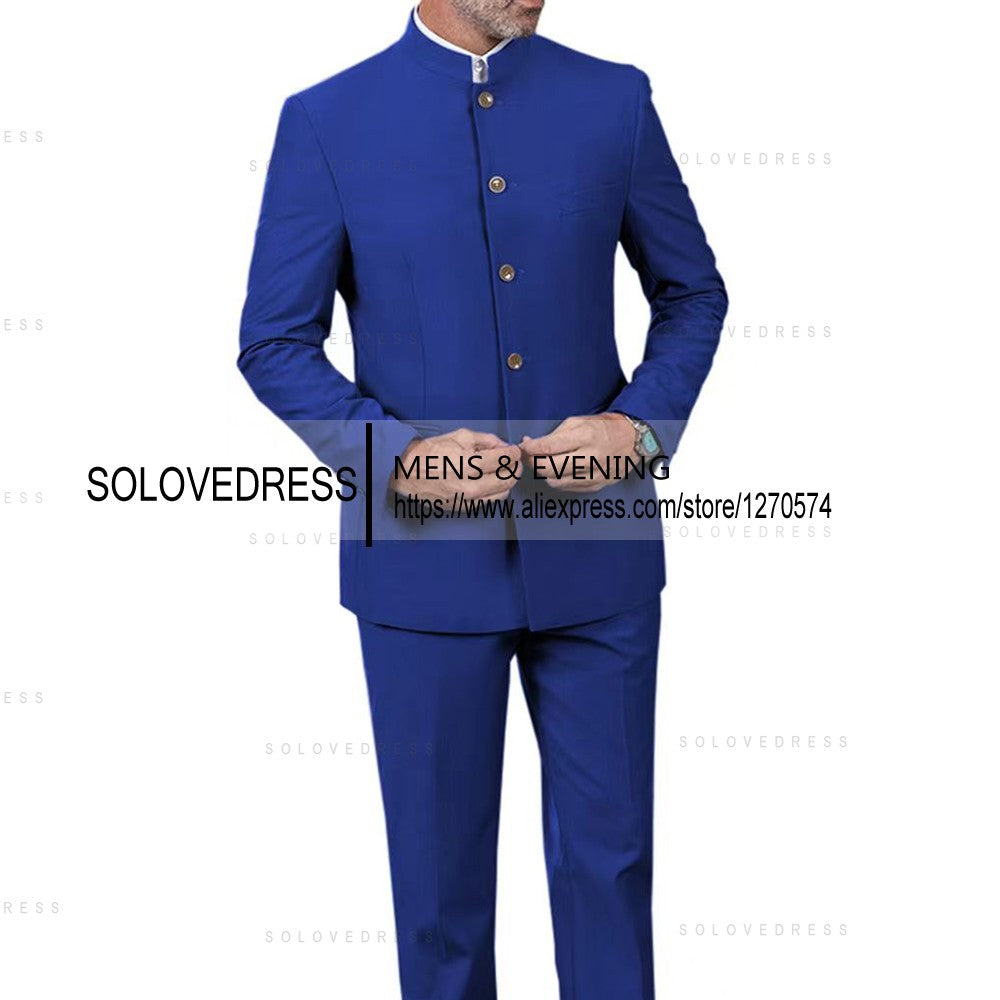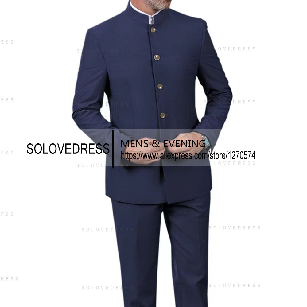 Classic 2 Piece Men's Slim Fit Solid Color Stand Collar Wedding Suit (Blazer+Pants?