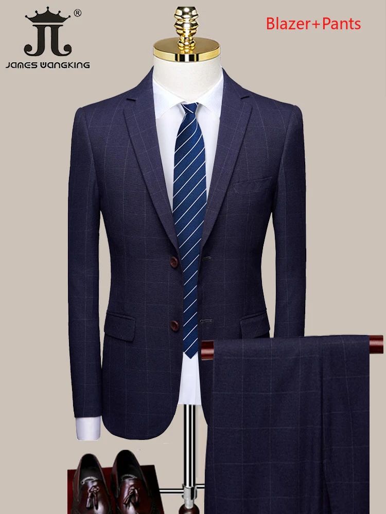 Blazer Vest Pants Luxury High-end Brand Boutique Plaid Casual Business Suit 3 Pcs and 2 Pcs Set Groom Wedding Party Dress Jacket