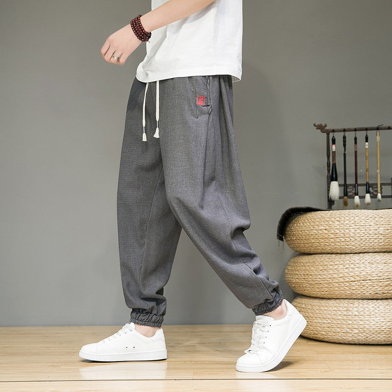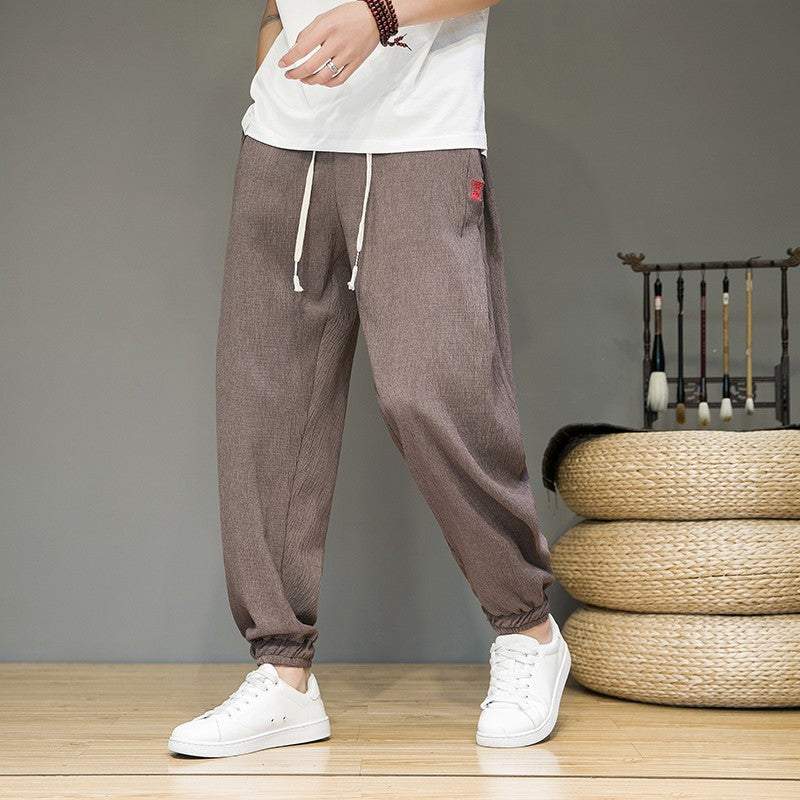 Men's Cotton Linen Pants Male Autumn New Breathable Solid Color Linen Trousers Fitness Streetwear S-3XL