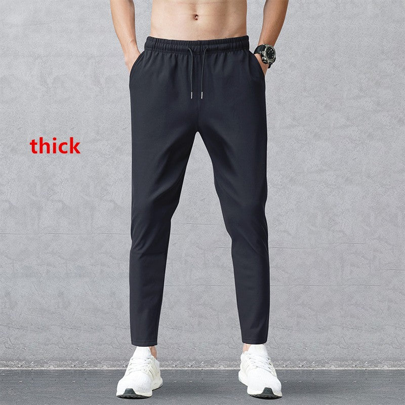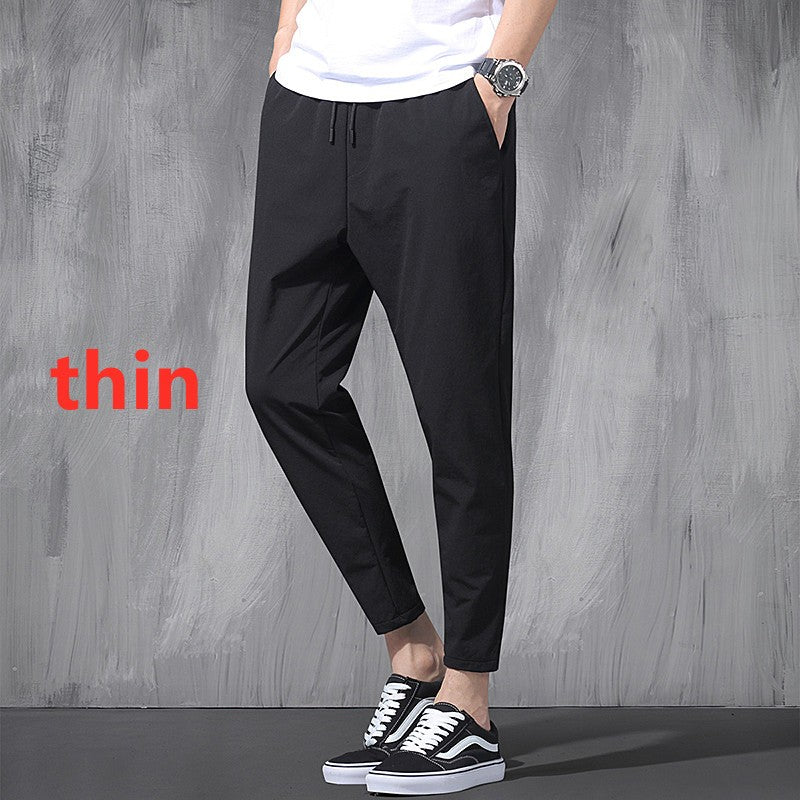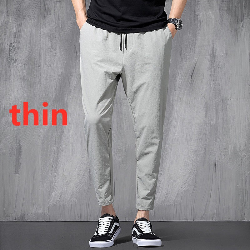 2025 New Korean Ice Silk Elastic Trousers Four Seasons Thin Casual Men'S Loose 9-Point Large Size Small Foot Sports Pants Spring
