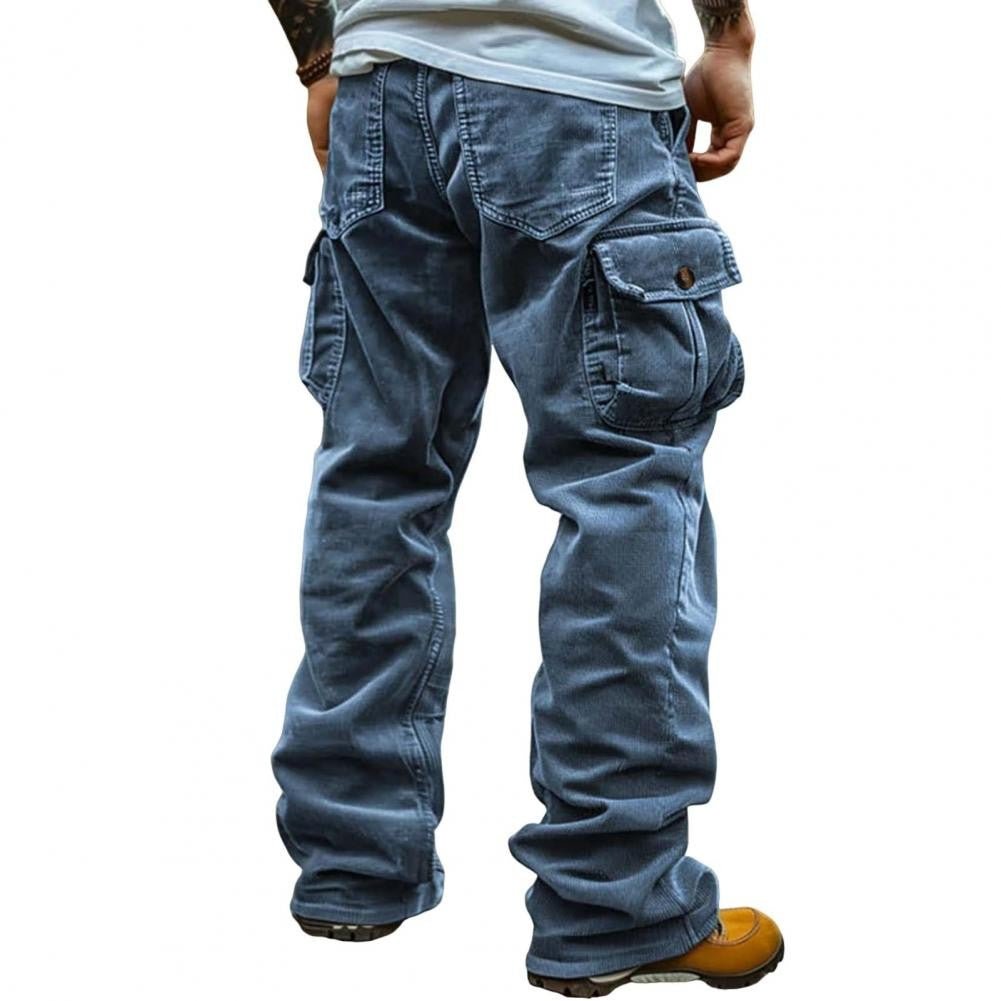 Cargo Pants for Men Retro Style Men's Corduroy Cargo Pants with Multiple Pockets Mid-rise Solid Color Trousers for Wear Long