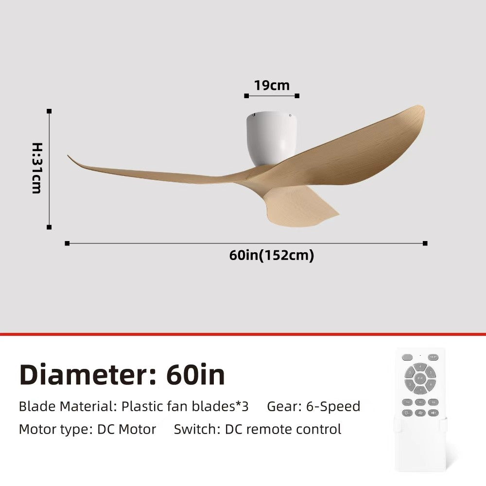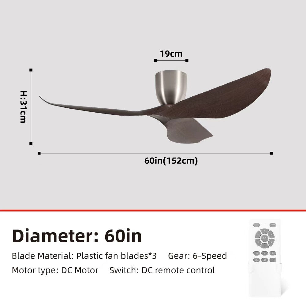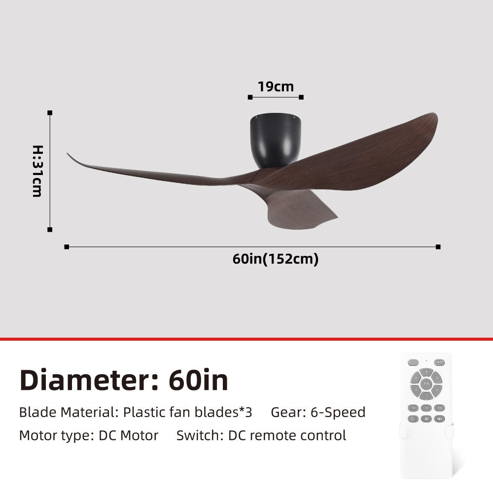 FUMANJIA 52"/60" Ceiling Fan DC Motor 6-Speed Remote Silent 3 ABS Blades - Vintage Industrial Ventilator for Home/Office/Coffee