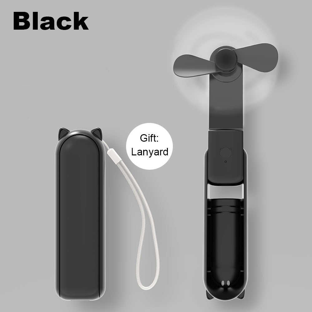 Portable Fan 2000mAh USB Rechargeable 3 Speed Mini Handheld Foldable Fan Hand Held Small Pocket Travel Fan with Handy Power Bank