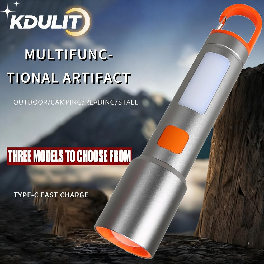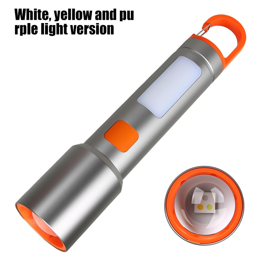 LED COB Super Bright Flashlight USB Rechargeable Torch 1-3 Optional Light Sources Outdoor Waterproof Emergency Light with Hook