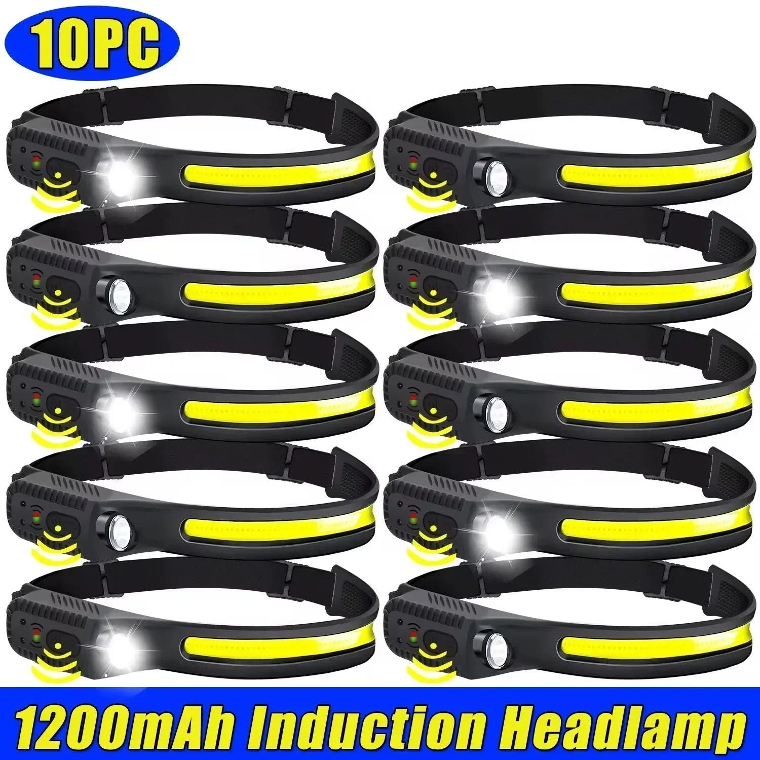 1-10PCS LED Indication Headlamp Rechargeable Head Flashlight 1200mah Built in Battery Outdoor Camping Fishing Headlight Lantern