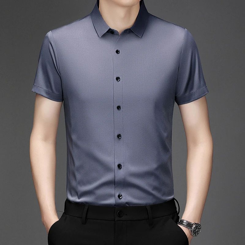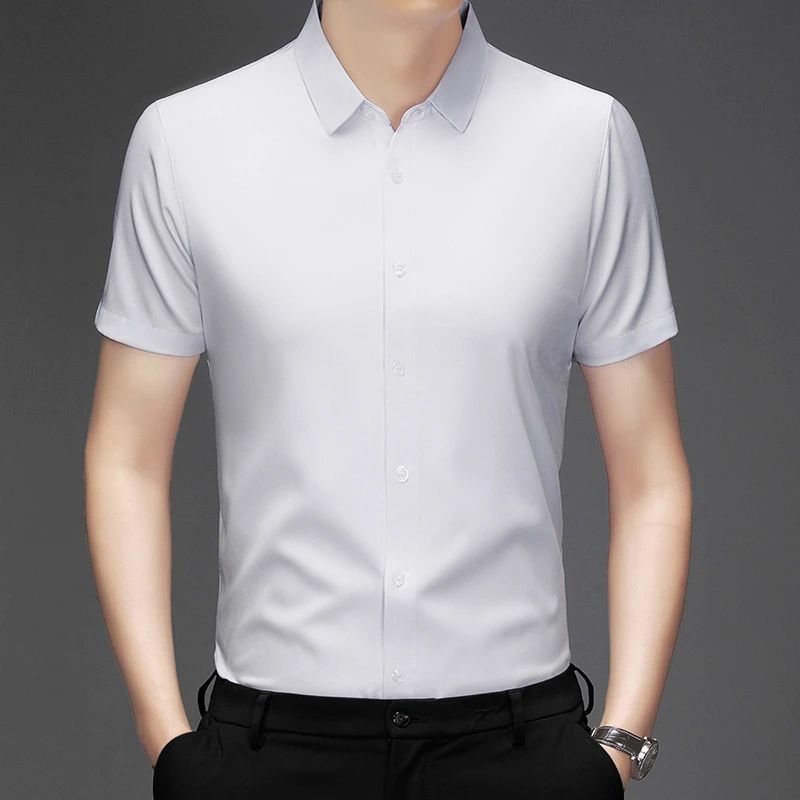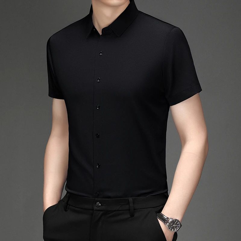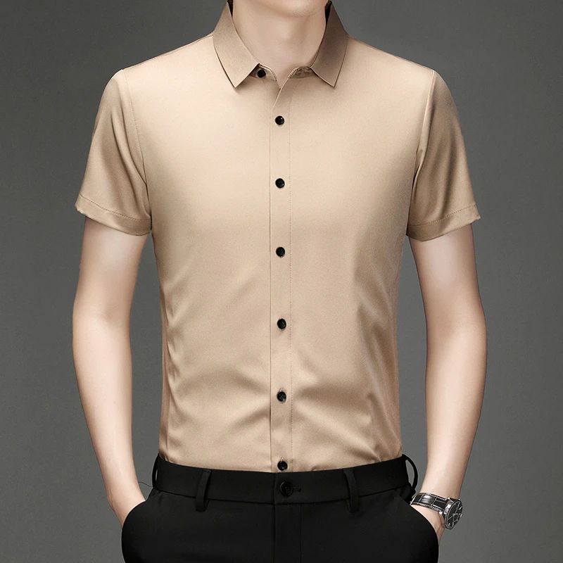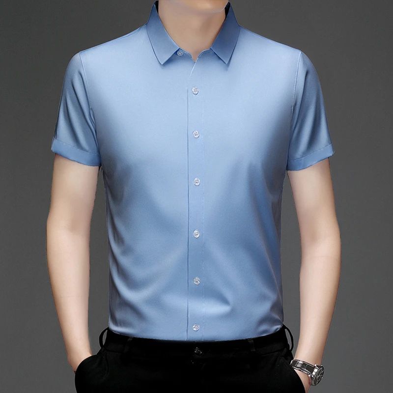 New Men's Business Casual Short Sleeved Solid Color Shirt Wrinkle Resistant Wrinkle Free Comfortable All Season Versatile Top