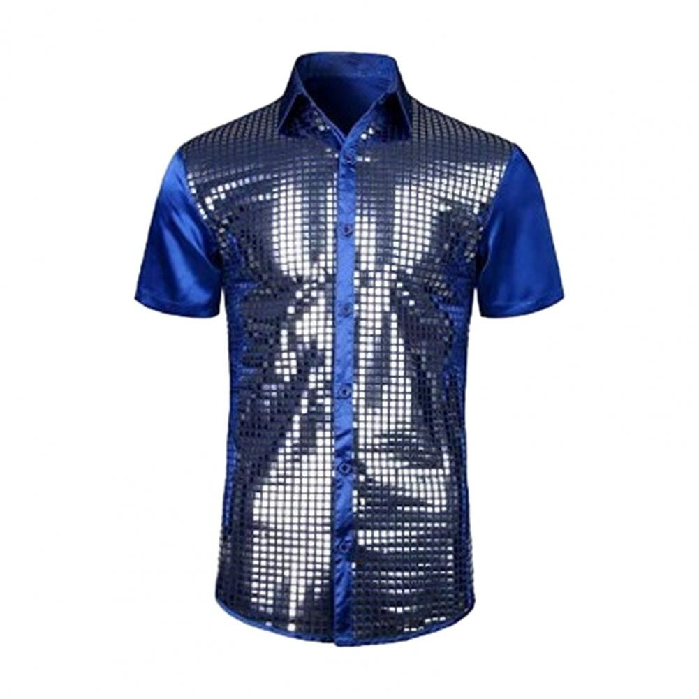 70s Shiny Surface Men Shirt Turn-down Collar Single-breasted Long Sleeves Buttons Cotton Shirt Club Party Disco Stage Show Shirt