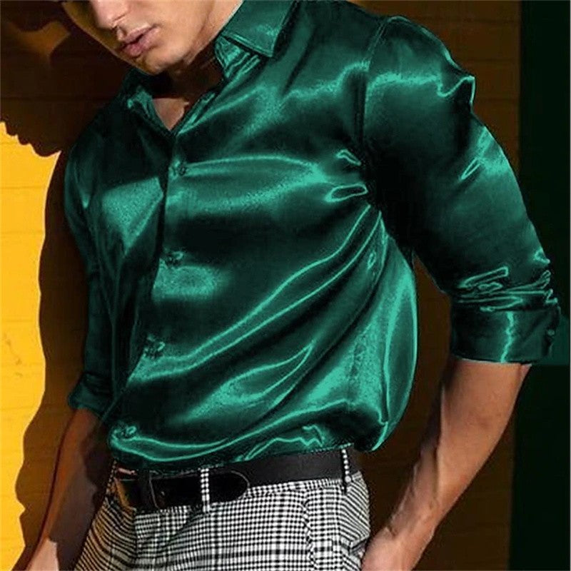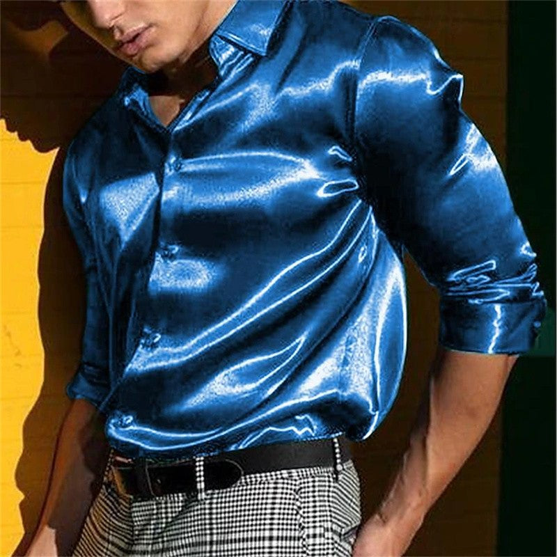 Men's wedding festival shirt solid color black white blue red long sleeve lapel shirt casual loose style fast delivery