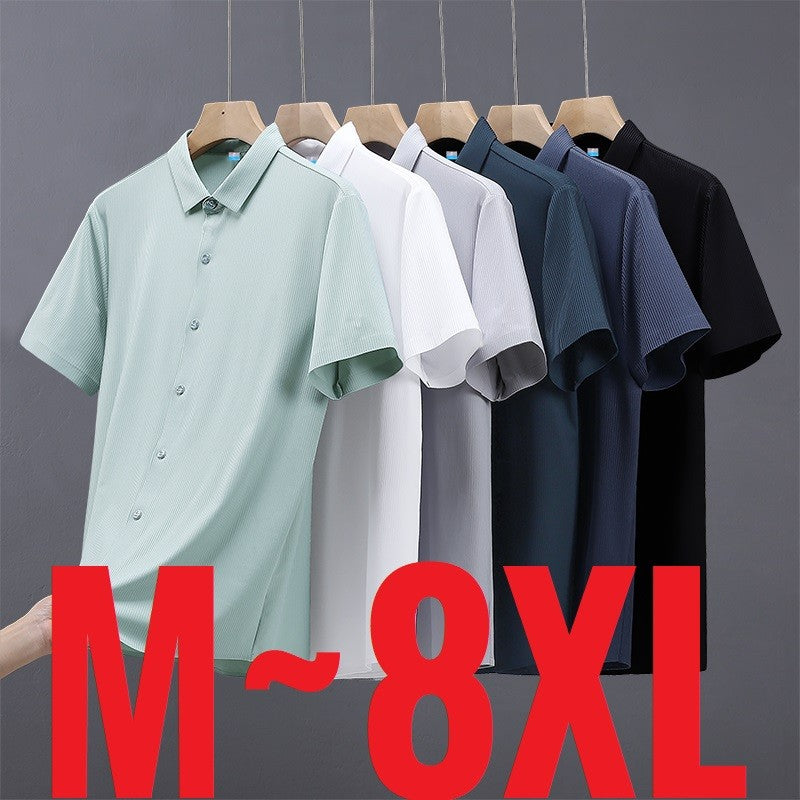 Ice Silk Shirts Man Short Sleeve Top Male Quick Dry Cool Classic Big Size 5XL 6XL 7XL 8XL Large Plus Loose Summer Social Blouse