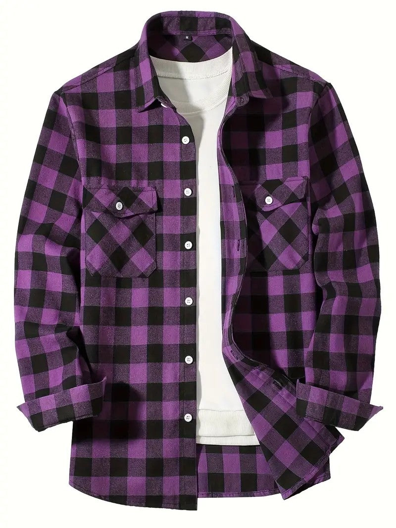 Spring and Autumn Fashion Cotton Long Sleeve Men's Shirt New Brushed Red Plaid Business Leisure Fit Flannel No iron