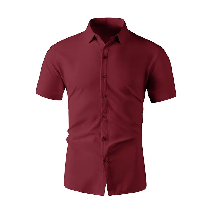 New Men's Business Casual Solid Color Short Sleeved Shirt for Summer Fashion No Ironing Comfortable and Versatile Top