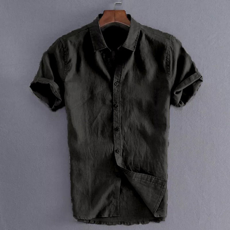 Men's Casual Short Sleeve Shirts Leisure Street Wear Lapel Button-down Solid Color Shirts for Men Vintage Vacation Blouse M-3XL